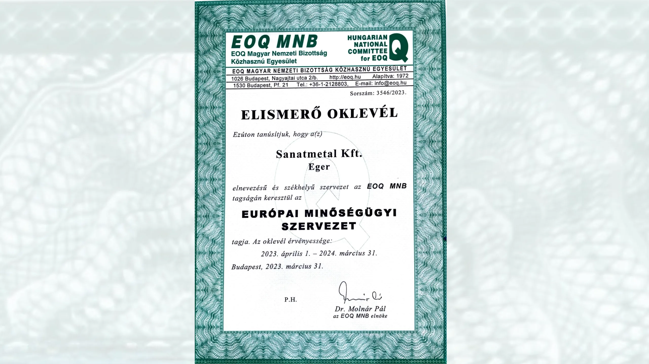 Nemzeti Minőségi Klub tagja