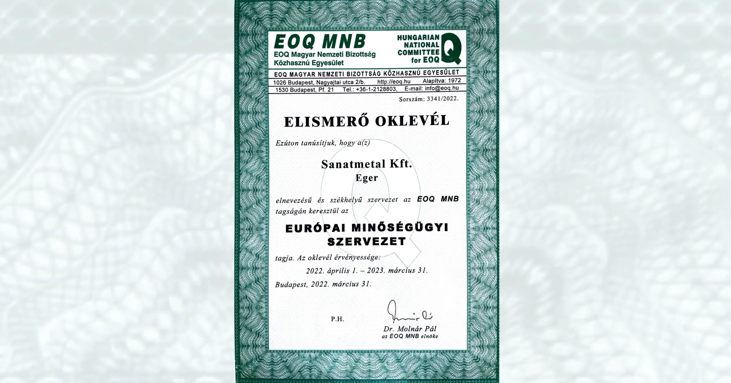 Minőség Innováció (EOQ European Organization for Quality)